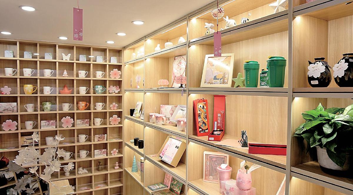 武漢大學(xué)櫻花郵局內(nèi)櫻花類(lèi)文創(chuàng)產(chǎn)品琳瑯滿目。