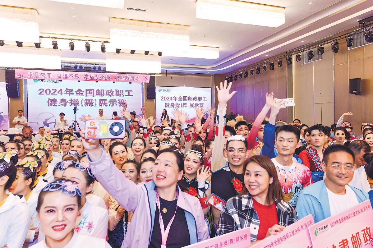 這次大賽舞出了風(fēng)采。無論是青年組還是中年組,參賽隊(duì)員們都活力滿滿、熱情四溢,集中展示了中國郵政全體職工的健身成果,彰顯著運(yùn)動帶來的健康與快樂。有隊(duì)員即使賽前訓(xùn)練受傷,也堅(jiān)持上場比賽,用行動將郵政人勇敢拼搏的精神、昂揚(yáng)向上的風(fēng)貌展現(xiàn)得淋漓盡致。