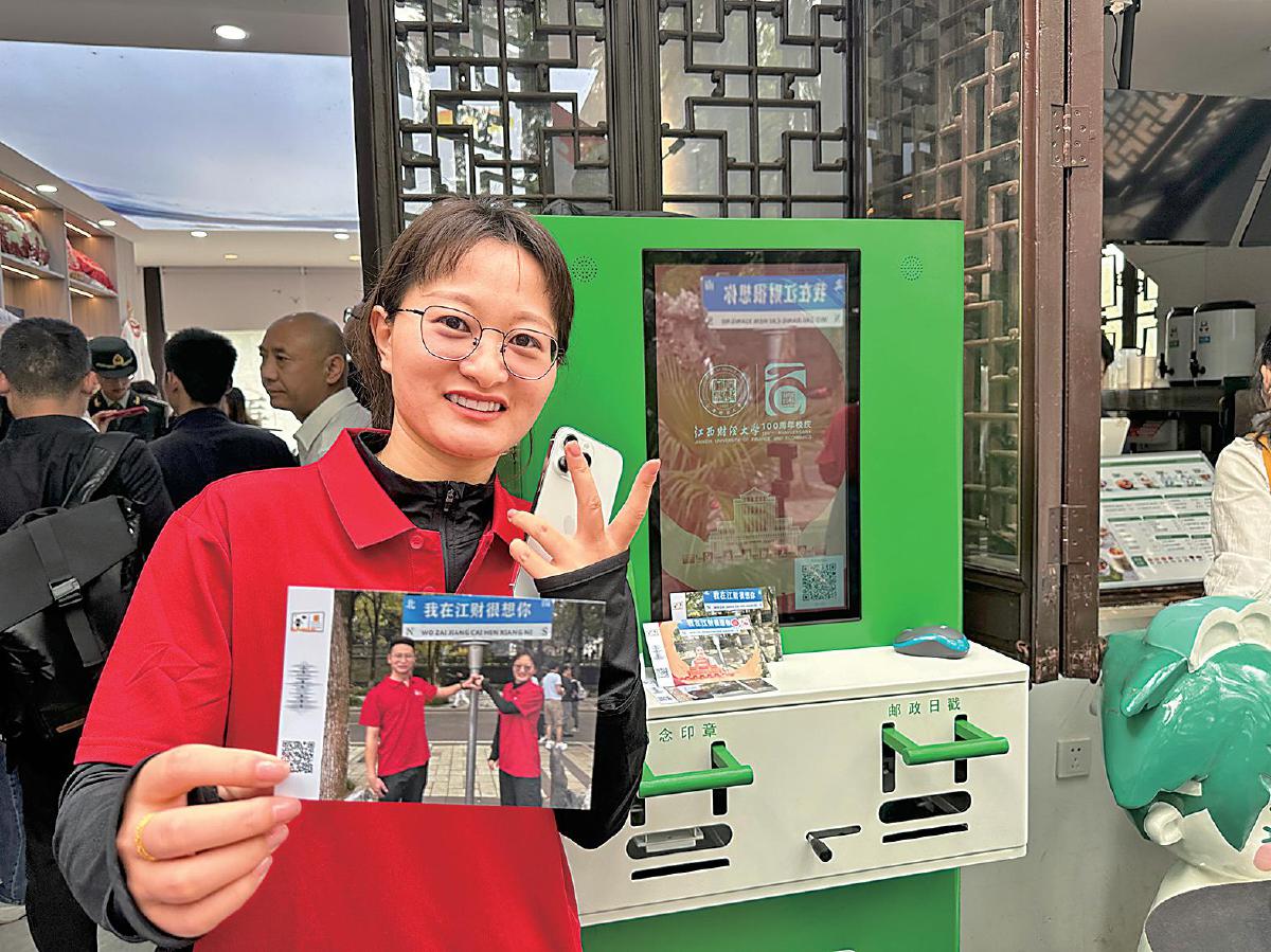 校慶現(xiàn)場,江西財經(jīng)大學(xué)學(xué)生在小程序下單,現(xiàn)場打印明信片。 □凌心玥 攝