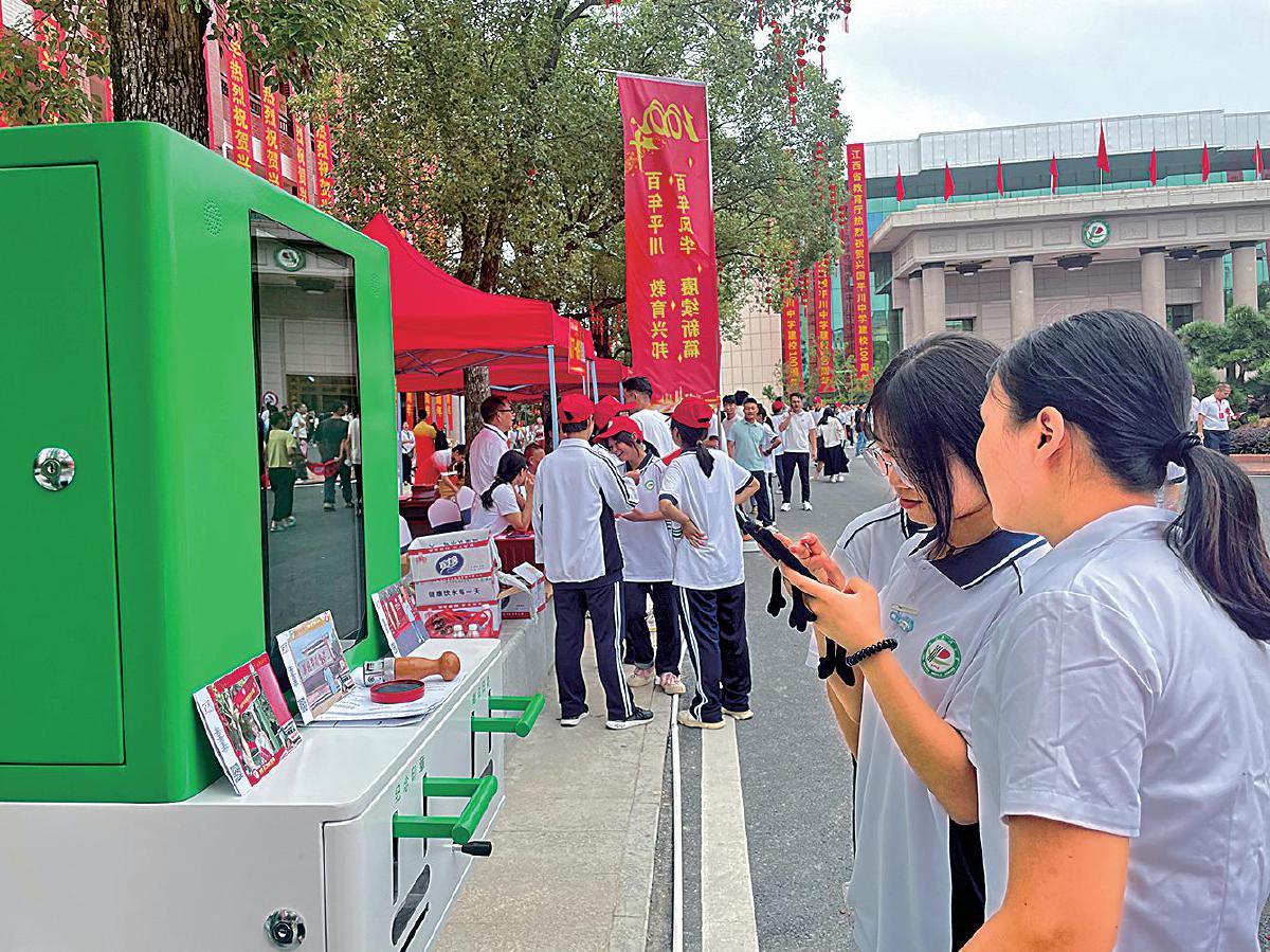 興國縣分公司在平川中學(xué)百年校慶活動現(xiàn)場設(shè)置明信片打印機,吸引同學(xué)們參與?! 趵钇G 攝
