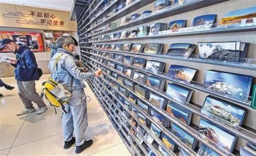 游客在“天上西藏”主題郵局布達拉宮店選購明信片。