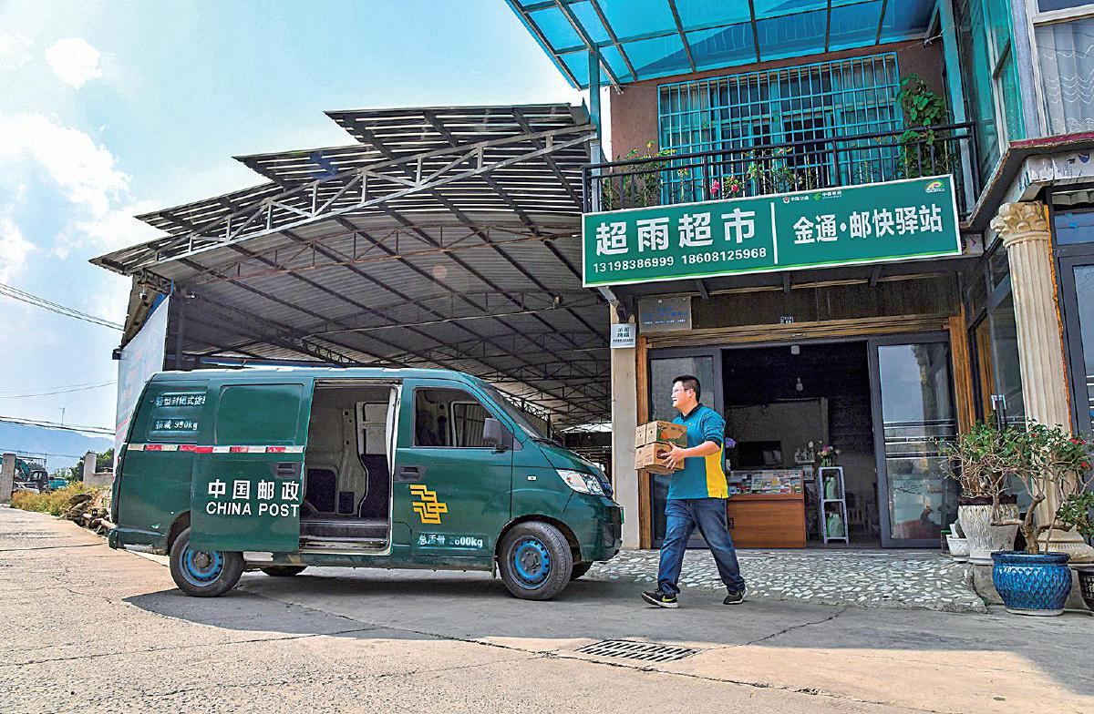 肖平非常高興,在郵政的幫助下,她的超市實現(xiàn)了提檔升級,成為村級綜合便民服務站。店招、打印機、貨架都是郵政提供的,超市里也增添了不少郵政惠民商品。更重要的是,超市作為村里的郵件收寄點,取郵件和寄物品的村民越來越多。來自全國各地的郵件在這里集散,也匯聚起源源不斷的客流。