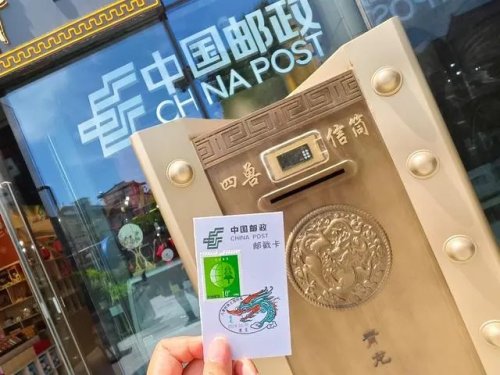 夜色里的大唐不夜城街區(qū),2021年建在這里的大唐郵驛主題郵局,因?yàn)殂~質(zhì)打造四面投信的“銅匭·四獸”郵筒,顯得格外扎眼。這里作為全國(guó)首家以唐文化為主題的郵局,一款款獨(dú)具巧思的郵政產(chǎn)品——大唐特色明信片、手辦、各式章戳,2024年全國(guó)首枚生肖龍?zhí)咨幕沾恋龋瑤褪忻裼慰椭庇^了解郵驛文化,吸引大量游客前來(lái)打卡,是目前西安日接待游客量最大的主題郵局。