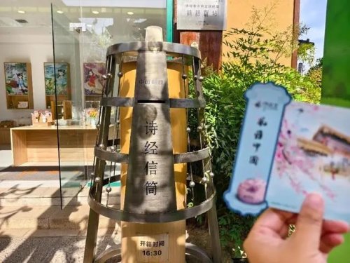 詩(shī)經(jīng)里小鎮(zhèn)“孫陽(yáng)”“望舒”的經(jīng)典IP形象,是詩(shī)經(jīng)驛站主題郵局的醒目地標(biāo)。5月15日上午,記者打卡詩(shī)經(jīng)驛站,遇到許多游客在這里郵遞信件、明信片,選購(gòu)各款詩(shī)經(jīng)紀(jì)念封、主題郵票,通過(guò)詩(shī)經(jīng)郵筒遙寄祝福,從詩(shī)經(jīng)里漫郵世界 。