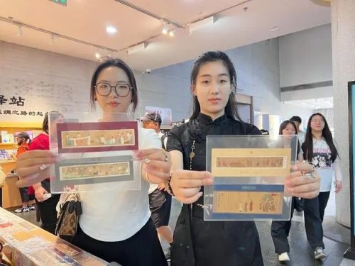 在陜歷博絲路驛站主題郵局,兩名從武漢來(lái)的“00后”大學(xué)生徐睿和李芷涵,也發(fā)現(xiàn)了驚喜。徐睿說(shuō):“我們是學(xué)藝術(shù)設(shè)計(jì)的,剛剛在樓上參觀時(shí),看到了難得一見(jiàn)的半壁仕女圖,沒(méi)想到在樓下就發(fā)現(xiàn)了仕女圖的特種郵票。特別開(kāi)心!”