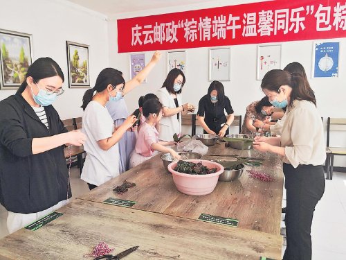 每年端午,德州市慶云縣郵政分公司都會(huì)邀請(qǐng)客戶到“職工小家”開展包粽子活動(dòng)?! 趵钇健z