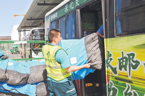 “每輛公交車的后邊都單獨隔開了一個郵件專門存放區(qū),由郵政工作人員將郵件裝車碼放好,我們駕駛員是沒有鑰匙的。運送到目的地后,由站點的工作人員負責開門卸貨,保證了所有郵件的安全?!?月9日下午1點半,在高鐵亳州南站附近的亳州郵件處理中心,正在等候即將送往沙土鎮(zhèn)的快件裝車的公交沙土線駕駛員侯金濤說,“公交車上還有多角度全程錄像,可以保證包裹不丟失、不損壞。公交車一天運送兩次包裹,從鄉(xiāng)鎮(zhèn)返回時,我將需要郵寄的郵件運送到市區(qū)的郵政郵件處理中心?!?/p>