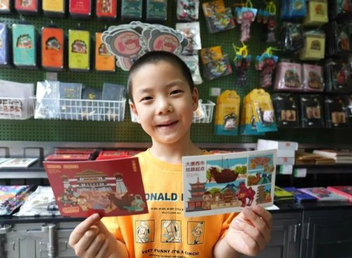 走入位于大唐西市絲綢之路風(fēng)情街的主題郵局,記者看到,店鋪門(mén)口設(shè)立了鯉魚(yú)傳書(shū)特色信筒,將古代“鯉魚(yú)傳書(shū)”的典故呈現(xiàn)至游客眼前,與大唐西市絲路起點(diǎn)廣場(chǎng)遣隋使號(hào)海船精妙呼應(yīng)。市民游客可以在逛主題郵局的同時(shí),穿越絲綢之路風(fēng)情街,體驗(yàn)“特色文創(chuàng)+郵政寄遞”服務(wù),一站集齊“絲路起點(diǎn)文創(chuàng)印章+郵政特色郵戳”。
