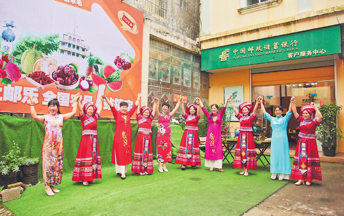 “朋友請到憑祥來,火紅的木棉為你開。這里有雄偉的友誼關,這里有富饒的邊寨,這里是祖國開放的大門……”6月5日中午,采訪組沿著友誼鎮(zhèn)的邊境郵路一路前行,還沒到鎮(zhèn)上的弄懷營業(yè)所,就聽到了陣陣歡歌笑語。