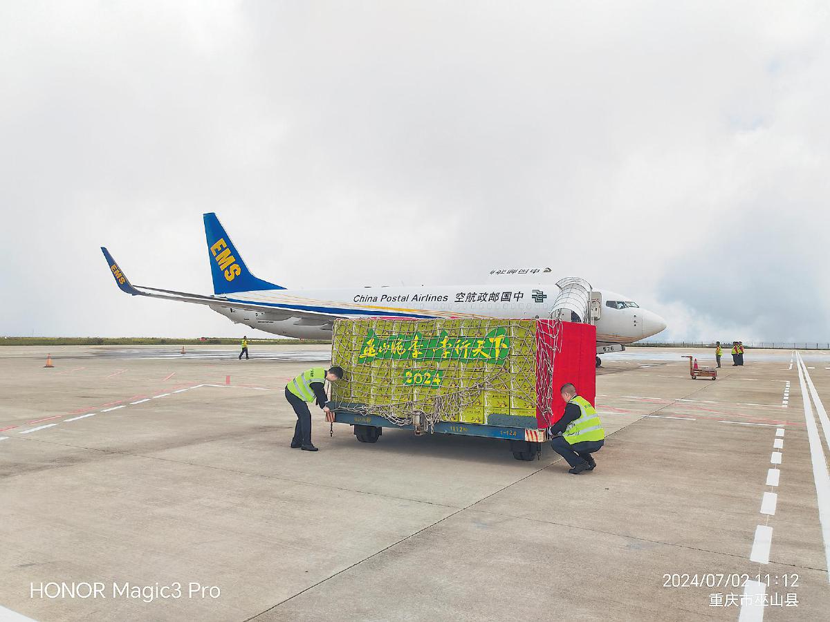 巫山脆李是重慶三大特色水果產(chǎn)業(yè)之一。截至2023年,巫山縣脆李種植面積超過(guò)30萬(wàn)畝,年產(chǎn)值超過(guò)70億元人民幣。為助推巫山脆李等特色農(nóng)產(chǎn)品暢銷全國(guó)、走向世界,6月4日,集團(tuán)公司批復(fù)開(kāi)行2024年度“郵運(yùn)通”“巫山—南京”巫山脆李極速鮮郵航專機(jī),運(yùn)行時(shí)間從7月2日開(kāi)始,至7月20日結(jié)束?!班]運(yùn)通”極速鮮郵航專機(jī)計(jì)劃飛行15班次、載貨量225噸。巫山脆李“坐”飛機(jī)抵達(dá)南京后,經(jīng)南京集散中心分撥,在24小時(shí)內(nèi)速運(yùn)至全國(guó)各地,實(shí)現(xiàn)全國(guó)“1000+城市”次日達(dá)。