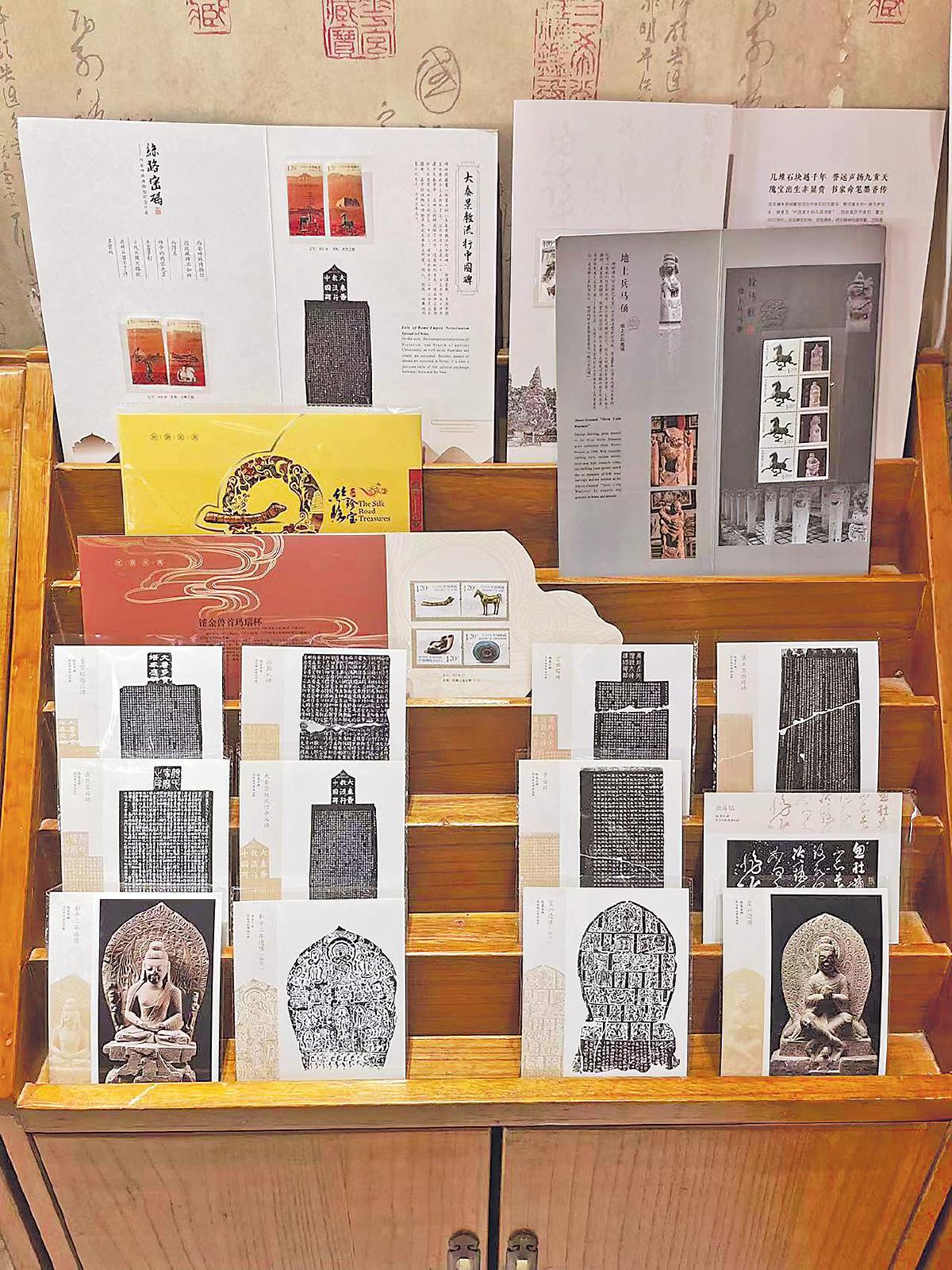 在碑林博物館主題郵局的郵品設(shè)計(jì)方面,陜西郵政更是別出心裁。這里不僅有昭陵六駿、碑林珍貴碑文的拓片明信片,也有結(jié)合碑林館藏文物開(kāi)發(fā)的特色郵品,并詳細(xì)介紹了這些文化瑰寶的歷史和傳承。碑石有靈,翰墨雋永。相關(guān)郵品不僅受到游客的喜愛(ài),更是為許多書(shū)法愛(ài)好者所珍藏。