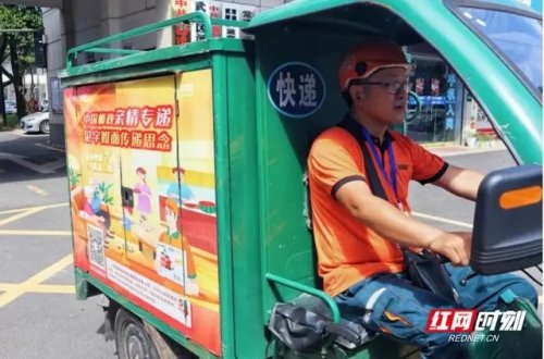 7月19日,早上八點(diǎn),戶外溫度已超過30℃,在常德市西區(qū)攬投部,快遞員何中清已經(jīng)忙著卸貨、分揀、掃描和裝車了,不長(zhǎng)的時(shí)間汗水便將工作服打濕。何中清是該網(wǎng)點(diǎn)資歷最老的快遞員,從事郵政快遞行業(yè)已有十六年時(shí)間。九點(diǎn),何中清駕駛著三輪車,帶上公司配備的防暑裝備,開啟了他一天的“City Walk”。