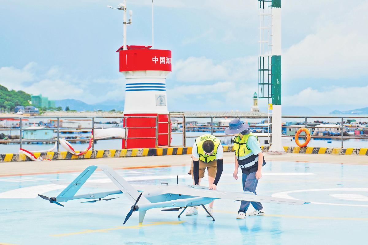 7月30日,廣東首條海島無人機郵路開通。10時40分,無人機從珠海市唐家港公共物流基地起飛,半小時后到達距離珠海市區(qū)30公里的桂山島。據(jù)介紹,過去裝載桂山島郵件的貨船要中午12點前后到達桂山島,郵件下午才能投遞。無人機郵路開通后,投遞員上午就能完成郵件投遞。珠海郵政將緊抓低空經(jīng)濟發(fā)展機遇,打造海島物流體系新格局,為海島軍民提供更加便捷、高效的用郵服務(wù)。圖為無人機??吭诠鹕綅u停機坪的指定位置。