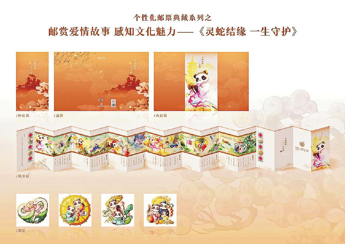 近日,國產(chǎn)動畫電影《白蛇·浮生》熱映,喚起了人們關(guān)于白蛇神話故事的美好回憶。圍繞《白蛇傳》這一國人家喻戶曉的經(jīng)典愛情故事,中國集郵繼續(xù)攜手原創(chuàng)IP形象“漢服熊貓”開發(fā)郵品,創(chuàng)新推出“白蛇傳”主題個性化郵票典藏風(fēng)琴折——《靈蛇結(jié)緣 一生守護(hù)》,以郵為媒,傳承經(jīng)典。