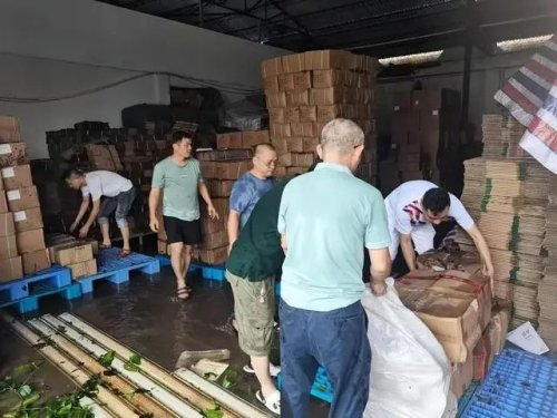 ??谑朽]政分公司工作人員正在搶救倉庫物資
