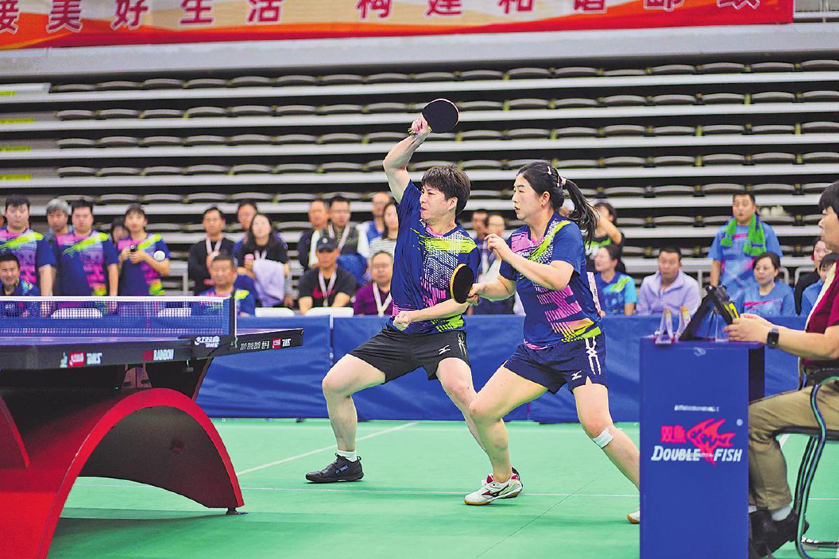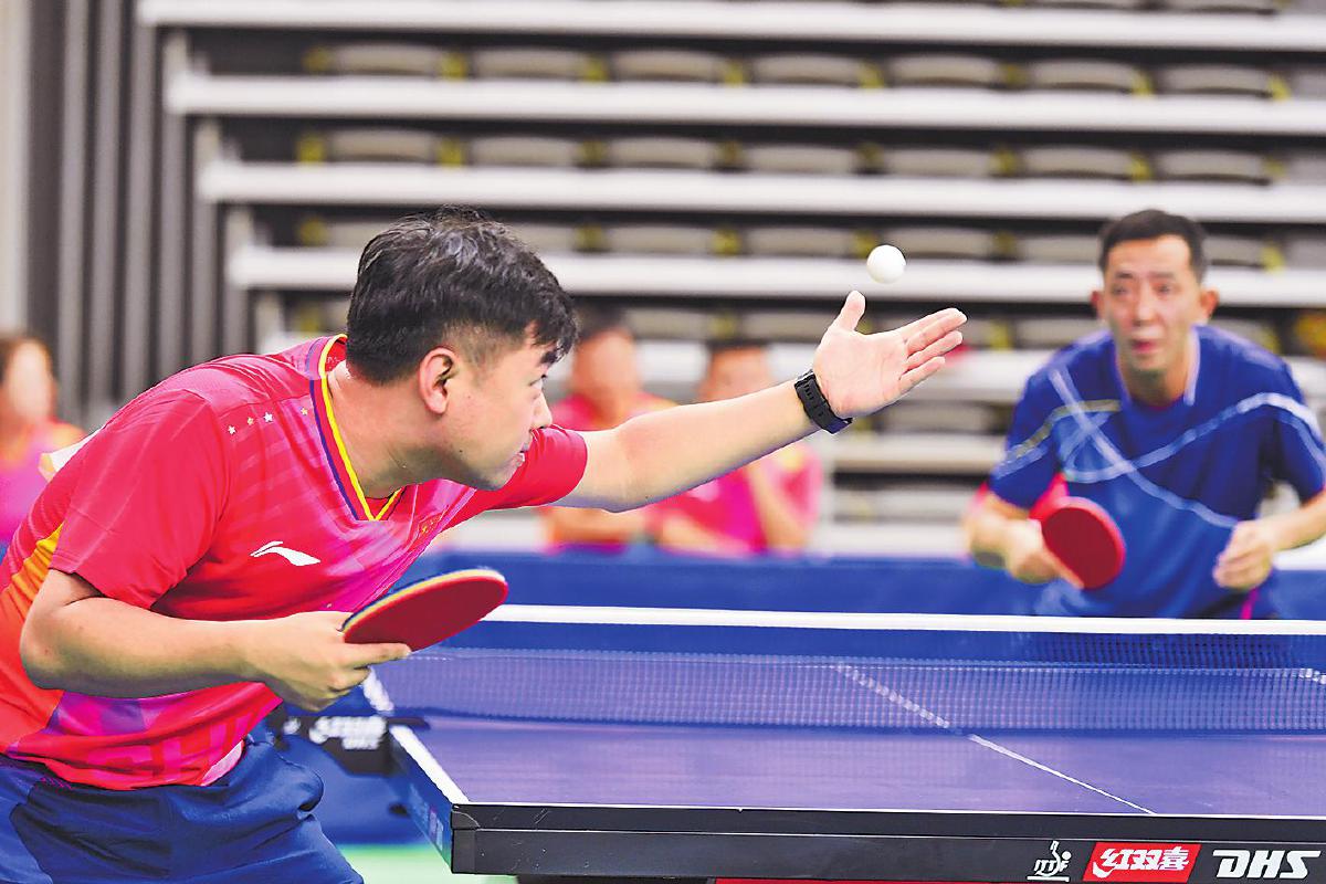 本次比賽觀賞性、競(jìng)技性十足。賽場(chǎng)上,有面對(duì)臺(tái)風(fēng)肆虐依然堅(jiān)持訓(xùn)練迎戰(zhàn)比賽的隊(duì)伍,有連續(xù)奮戰(zhàn)四屆比賽即將退休的老將,有從國(guó)家隊(duì)、省隊(duì)退役帶傷上陣的斗士,有并肩作戰(zhàn)的夫妻檔,有接力傳承的老中青組合,匯聚起這場(chǎng)乒乓盛宴的強(qiáng)大陣容。來自江西郵政代表隊(duì)的劉羿和吳春顏是夫妻檔混雙組合,兩人在大學(xué)因乒乓球結(jié)緣,后來又成為工作上的同事,這次在賽場(chǎng)上更是展現(xiàn)出了伴侶間的默契?!拔覀兎浅A私獗舜耍芏鄷r(shí)候心領(lǐng)神會(huì),能夠取長(zhǎng)補(bǔ)短?!眲Ⅳ嗳缡钦f。曾代表中國(guó)郵政出征“2020中國(guó)職工乒乓球聯(lián)賽”并斬獲“四金二銀一銅”戰(zhàn)績(jī)的選手們幾乎全部來到了賽場(chǎng),其中男單青年甲組冠軍蔡偉表示:“上次是對(duì)外比拼,這次是內(nèi)部競(jìng)技,友誼第一?!?/p>