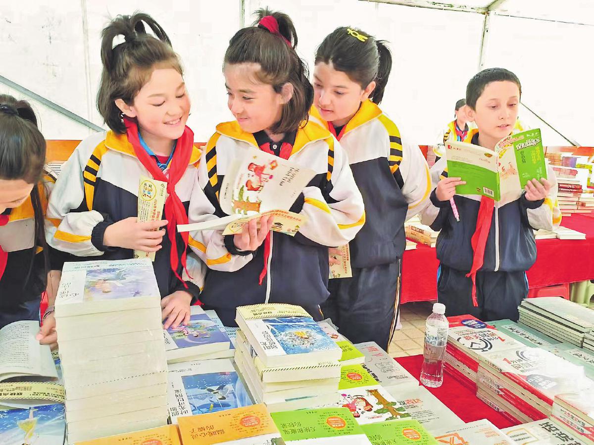 近日,由新疆維吾爾自治區(qū)喀什市委宣傳部、市教育局牽頭,喀什地區(qū)郵政分公司承辦的“閱讀新時(shí)代·喀什向未來”圖書贈(zèng)閱惠民活動(dòng)啟動(dòng)儀式在喀什市第十一小學(xué)舉行??κ驳貐^(qū)分公司捐贈(zèng)了價(jià)值6萬元的圖書和價(jià)值80萬元的圖書優(yōu)惠券,并現(xiàn)場(chǎng)進(jìn)行圖書展銷,進(jìn)一步豐富學(xué)校圖書閱覽室藏書,培養(yǎng)學(xué)生良好的閱讀習(xí)慣,讓他們?cè)谧x書中獲得更多知識(shí),健康快樂地成長(zhǎng)。圖為喀什市第十一小學(xué)的學(xué)生徜徉在書海中。