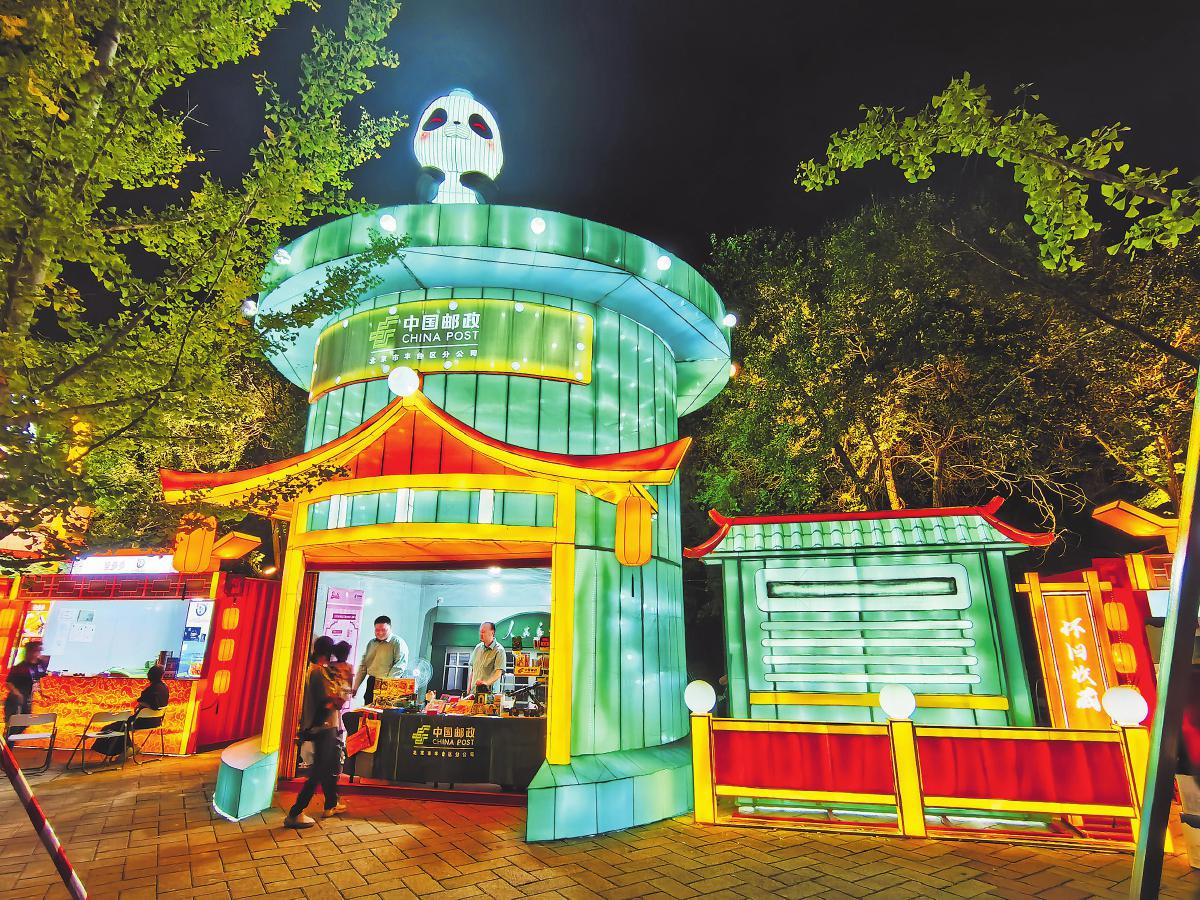 9月14日,北京首屆“京彩燈會(huì)”——園博園中秋國慶彩燈游園會(huì)盛大開幕。此次燈會(huì)規(guī)模宏大,是四川自貢燈會(huì)在北京的再度精彩呈現(xiàn),為廣大游客帶來了一場(chǎng)融合傳統(tǒng)文化與現(xiàn)代創(chuàng)意的視覺盛宴。燈會(huì)上,一組藍(lán)綠色調(diào)的郵筒花燈格外引人注目。這組花燈具有濃厚的中式建筑風(fēng)格,展現(xiàn)了郵筒的傳統(tǒng)形象,特別是上方的熊貓?jiān)O(shè)計(jì),憨態(tài)可掬。為更好地服務(wù)“京彩燈會(huì)”,北京市豐臺(tái)區(qū)郵政分公司專門設(shè)計(jì)了園博園燈會(huì)紀(jì)念章,還推出了一系列融合郵政傳統(tǒng)文化與現(xiàn)代元素的文創(chuàng)產(chǎn)品,深受游客的青睞。