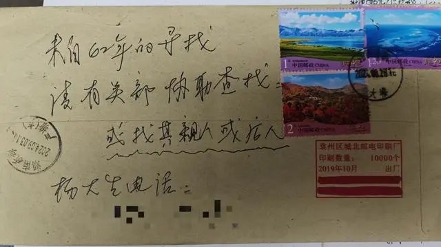信封背面留的字是:來自62年的尋找,請有關(guān)部門協(xié)助查找,或找其親人、后人。
