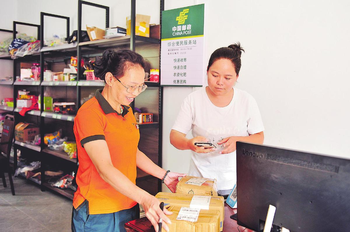 “以前我們?nèi)】爝f都要去鎮(zhèn)上,現(xiàn)在郵政把站點建到了我們村里,所有快遞在家門口就可以直接取,大大節(jié)省了時間。有時候在外地工作的家人想吃點兒家鄉(xiāng)土特產(chǎn),也可以通過服務點馬上寄出去,大大方便了我們!”9月15日,村民李美英走進湖南省湘西土家族苗族自治州花垣縣龍?zhí)洞遴]政綜合服務站點取快遞時,樂呵呵地說。