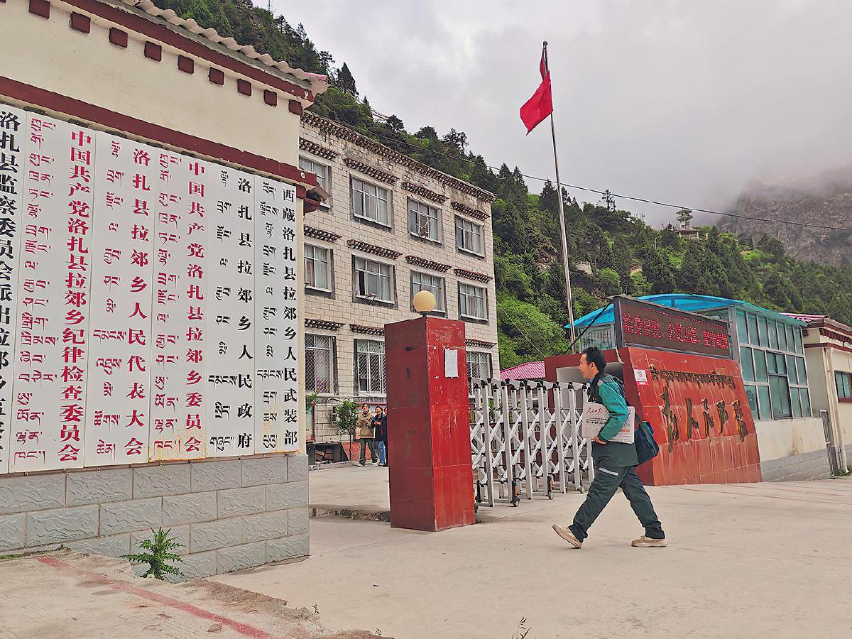 郵政投遞員為西藏洛扎縣拉郊鄉(xiāng)政府送去黨報黨刊?! 鯀挝亩Y 攝