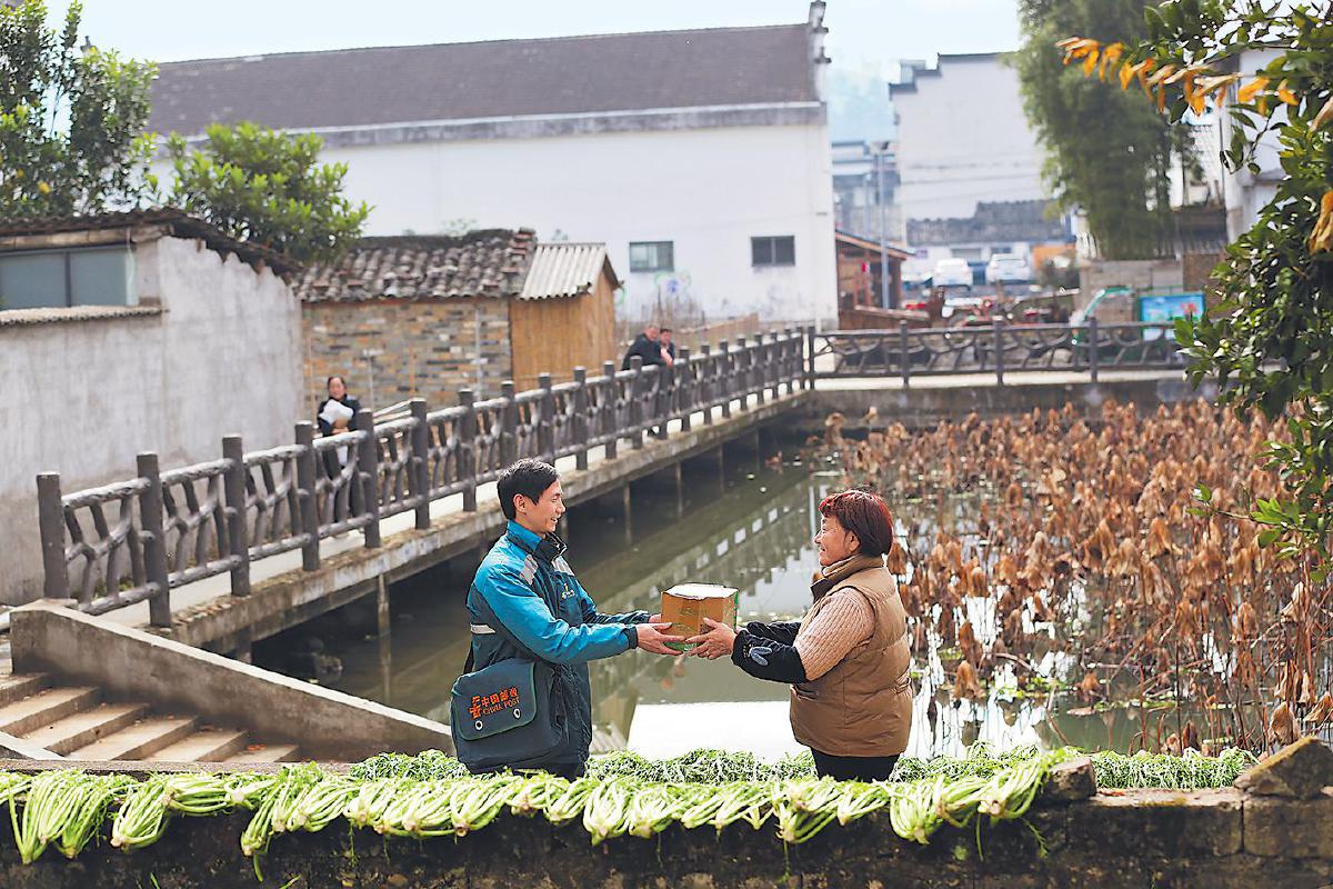 郵政送快遞郵件進村,打通村民網(wǎng)購“最后一公里”。 □陳師 攝