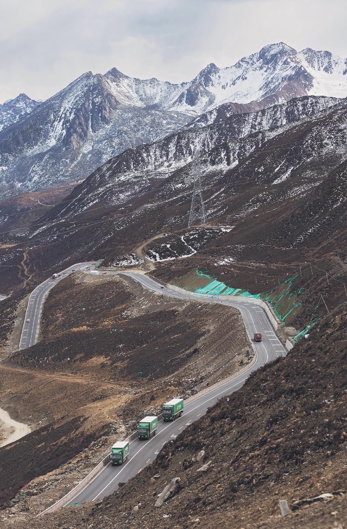 郵車翻越“雪線郵路”上的折多山?! 鯀挝亩Y 攝
