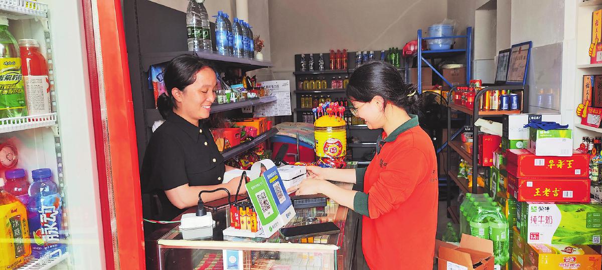 攬投員在居民小區(qū)便利店宣貫“寄件寶”掃碼操作流程?! 觞S舒穎 攝