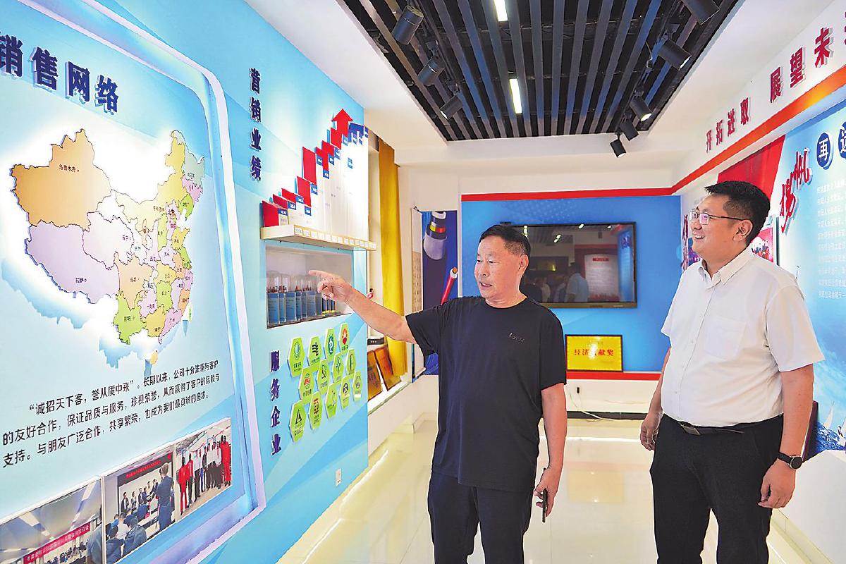 牛玉祥(左)與蘇伯寅回顧京陽立津線纜有限公司發(fā)展歷程。