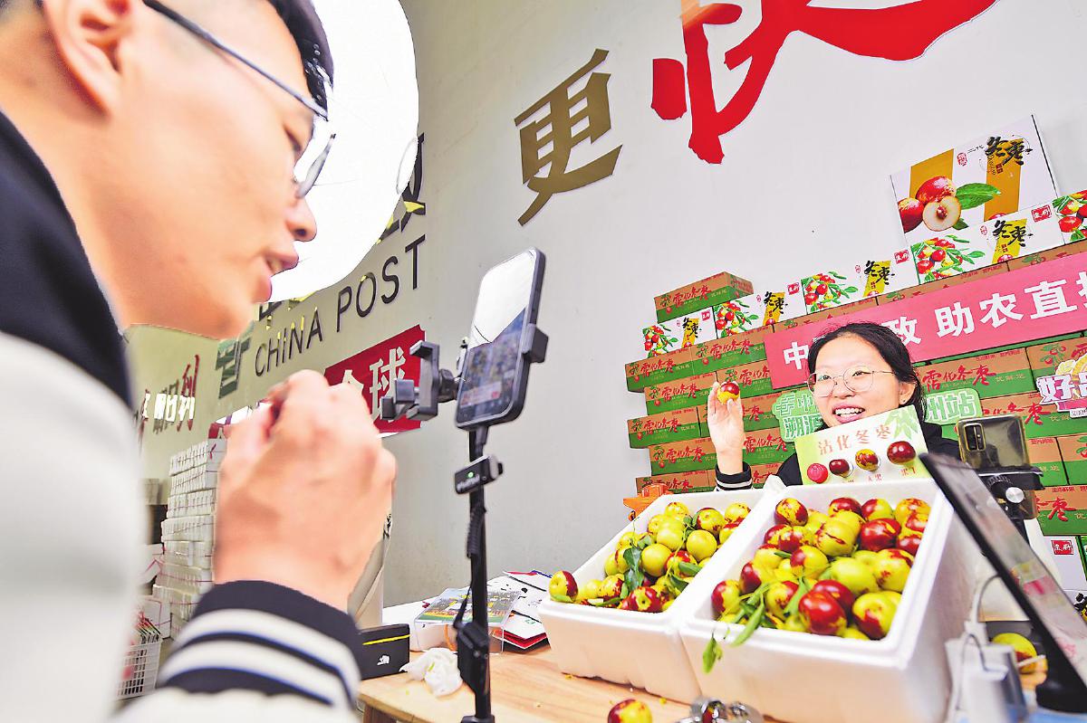 10月16日,山東省濱州市郵政分公司直播團(tuán)隊(duì)來(lái)到沾化區(qū)下洼鎮(zhèn)大下洼村開(kāi)展助農(nóng)直播,銷售冬棗近3000單。自9月沾化冬棗上市以來(lái),濱州郵政直播團(tuán)隊(duì)深入棗園、倉(cāng)庫(kù)開(kāi)展實(shí)地直播300余場(chǎng),助力棗農(nóng)銷售冬棗50萬(wàn)余斤。同時(shí),他們聯(lián)合下洼鎮(zhèn)政府推出“鎮(zhèn)長(zhǎng)帶您郵棗鄉(xiāng)”系列視頻宣傳,助力打造沾化冬棗品牌,帶動(dòng)鄉(xiāng)村旅游建設(shè),受到當(dāng)?shù)卣暮迷u(píng)。
