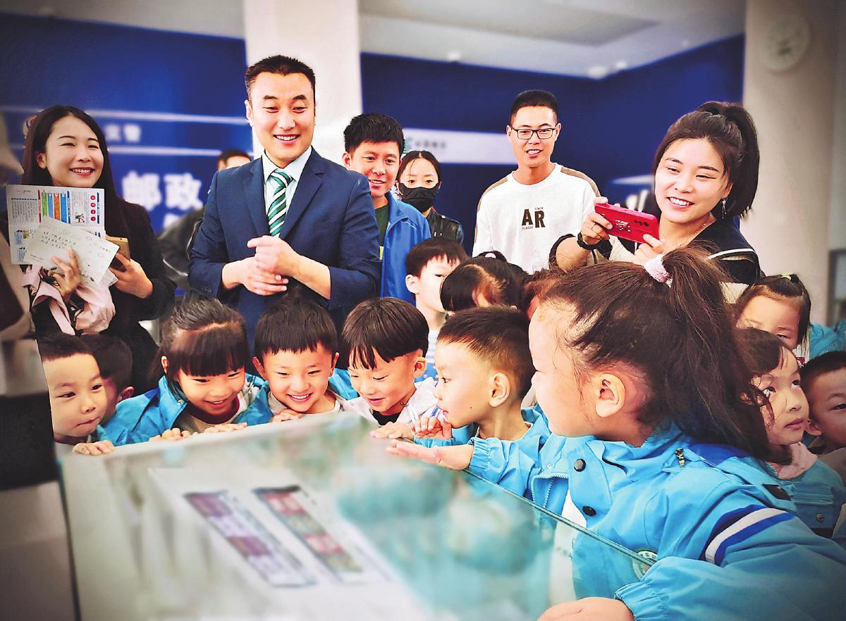 近日,江蘇省沛縣郵政分公司聯(lián)合當(dāng)?shù)赜變簣@開展“童心探秘之走進郵局”主題活動。在活動中,郵政工作人員帶領(lǐng)小朋友參觀郵政服務(wù)和生產(chǎn)場地,向他們講解郵政業(yè)務(wù)和郵票的知識及文化內(nèi)涵。孩子們還體驗了寫信寄信的過程,在信封的指定位置貼上郵票,并將信件投入郵筒中,接受了一次書信文化的熏陶。