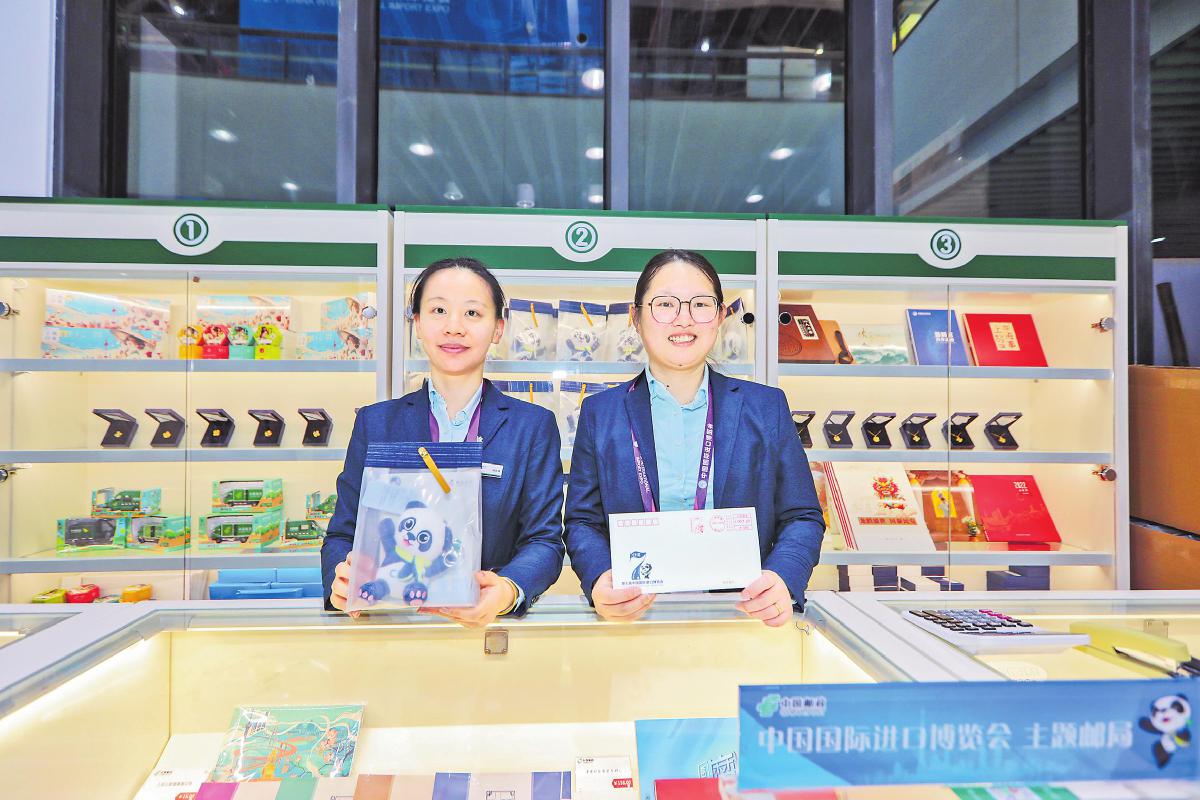 進(jìn)博會主題郵局工作人員笑迎八方來賓。