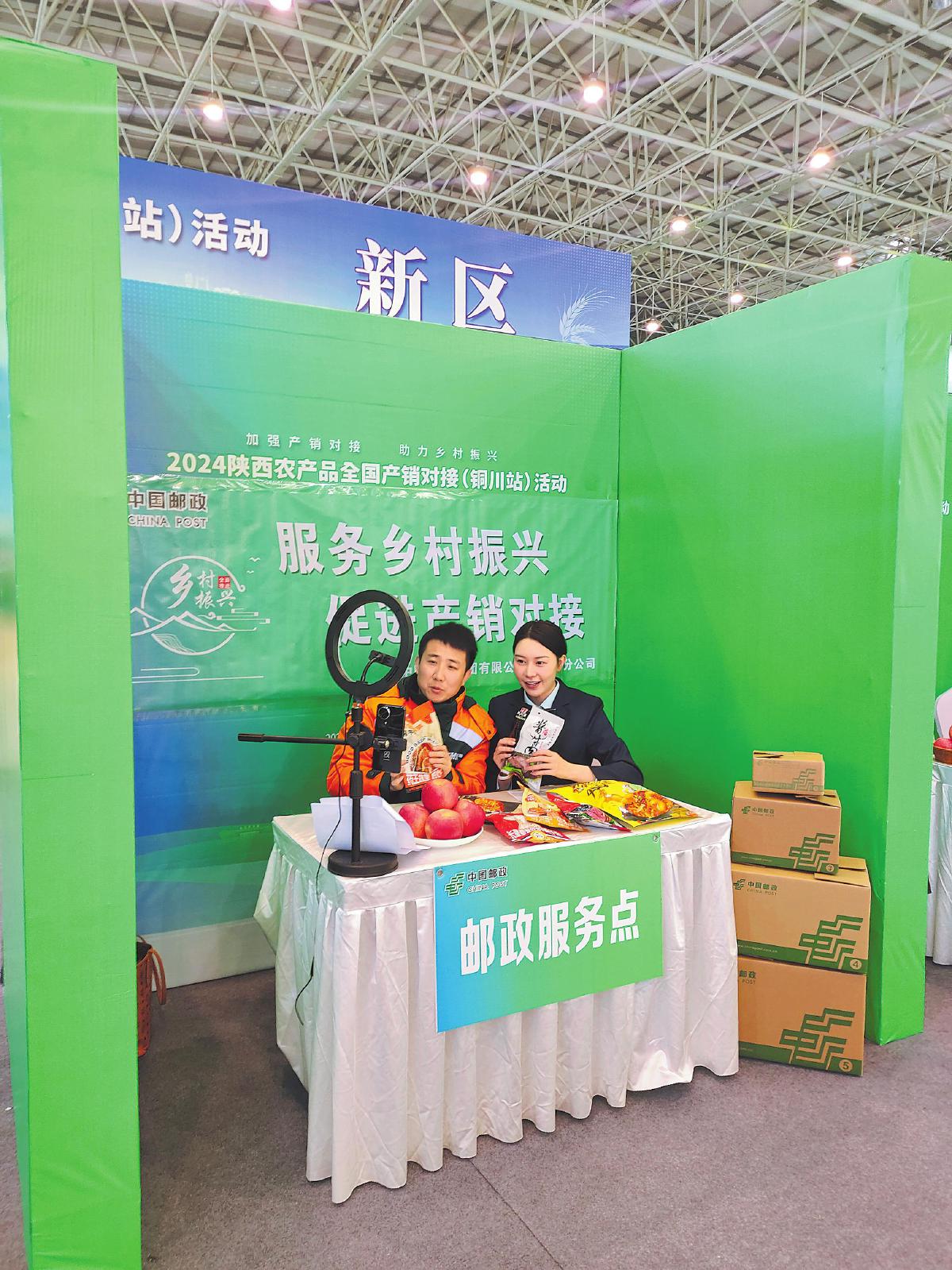 11月20日至22日,由陜西省商務(wù)廳、中國蔬菜流通協(xié)會和銅川市政府主辦的“2024陜西農(nóng)產(chǎn)品全國產(chǎn)銷對接(銅川站)活動”在銅川市舉辦。銅川市郵政分公司以“加強產(chǎn)銷對接助力鄉(xiāng)村振興”為主題,成立了服務(wù)農(nóng)產(chǎn)品全國產(chǎn)銷對接活動小組,現(xiàn)場設(shè)置郵政服務(wù)點,并通過郵樂直播推介銅川蘋果、醬牛肉、椒麻雞等特色農(nóng)產(chǎn)品,得到地方政府及相關(guān)部門的稱贊。