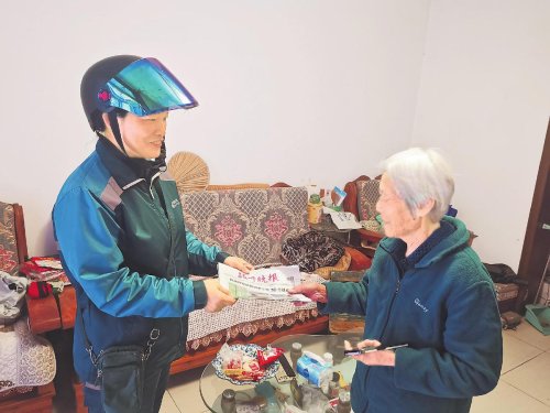 劉獻梅將報紙送到孤寡老人家中。
