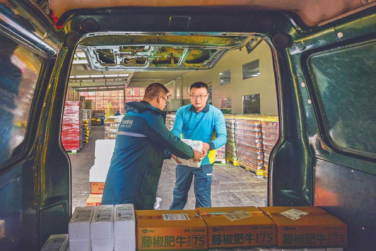 跨年度旺季營(yíng)銷(xiāo)啟動(dòng)以來(lái),河南省南陽(yáng)市郵政分公司圍繞營(yíng)銷(xiāo)與宣傳下功夫,以靠前服務(wù)為切入,組織人員深入電商企業(yè),為客戶(hù)提供從訂單、配貨、打包到發(fā)貨“一攬子”服務(wù),搶抓旺季商機(jī)。圖為12月9日該分公司攬投員上門(mén)收寄客戶(hù)新推出的“零添加”食品。