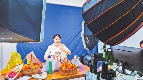 平樂郵政主播在電商直播間推介柿子系列產(chǎn)品。 □唐何溪 攝