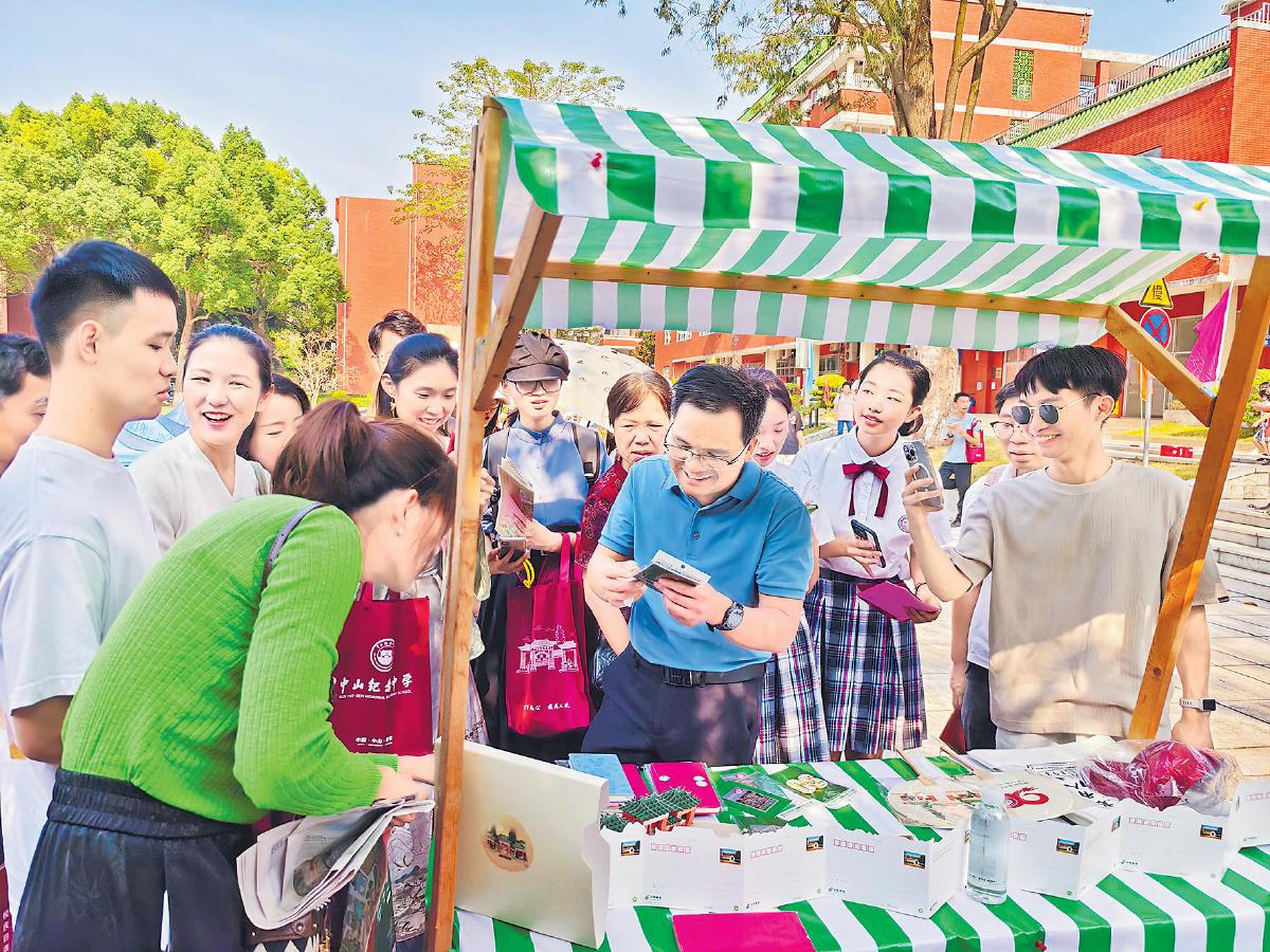 中山紀念中學的師生和校友選購校慶集郵文創(chuàng)產(chǎn)品。
