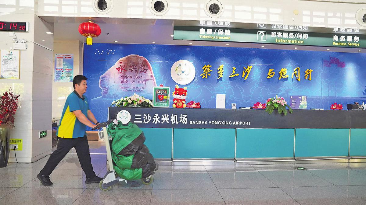 2024年12月27日8時32分,隨著海南三沙公務包機HU7071航班的順利起飛,其搭載的EMS特快郵件被送往三沙永興機場。40分鐘后,飛機平穩(wěn)降落。隨后,三沙郵政駐永興島工作人員在10時10分提取郵件,并立即進行分揀和投遞。三沙航空郵路在延續(xù)原有報刊運送服務的基礎上,新增EMS特快專遞郵件運送,為駐永興島黨政部門和軍民提供了更加多樣化和便捷化的郵政服務。2025年,三沙郵政將進一步提升服務水平,為建設美麗三沙貢獻更大力量。圖為三沙郵政駐永興島工作人員在永興機場提取郵件。