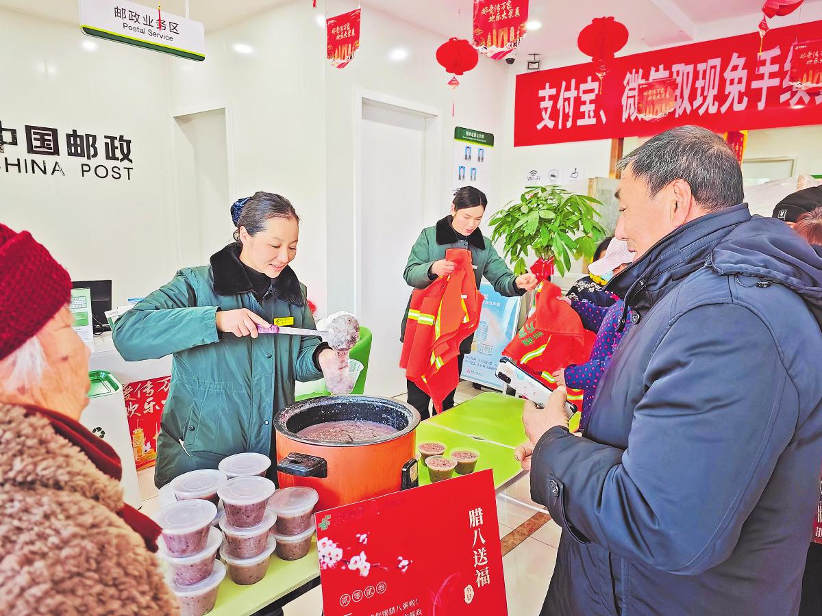 1月7日一早,江蘇省灌南縣郵政分公司九隊(duì)支局聯(lián)合當(dāng)?shù)丨h(huán)衛(wèi)部門(mén)舉辦“情暖臘八,‘郵’愛(ài)你我”活動(dòng)。該支局精心熬制了臘八粥,邀請(qǐng)新老客戶和環(huán)衛(wèi)工人免費(fèi)品嘗,并為環(huán)衛(wèi)工人贈(zèng)送專屬愛(ài)心馬甲,共同感受傳統(tǒng)節(jié)日的喜慶氛圍。同時(shí),支局工作人員還現(xiàn)場(chǎng)講解郵政金融知識(shí),開(kāi)展反詐宣傳,增進(jìn)了與客戶的交流。