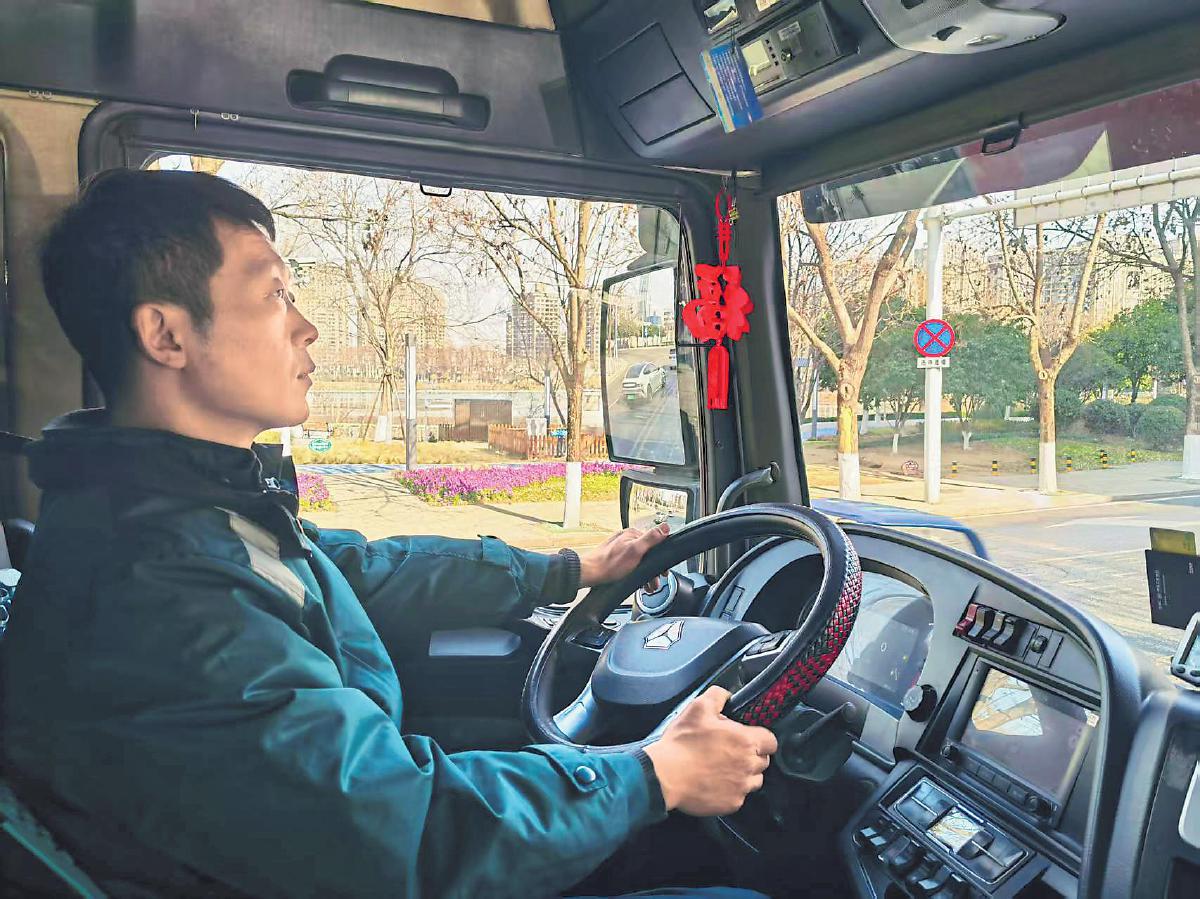 在忙碌中,陳文海會不時掃視一眼掛在駕駛室左側(cè)的“平安?!保@是家人送給他的?!捌桨哺!睅砹四晡?,也寄托著他70多歲的父母、勤勞持家的妻子、就讀高三的女兒的牽掛,提醒著他注意安全和保重身體。