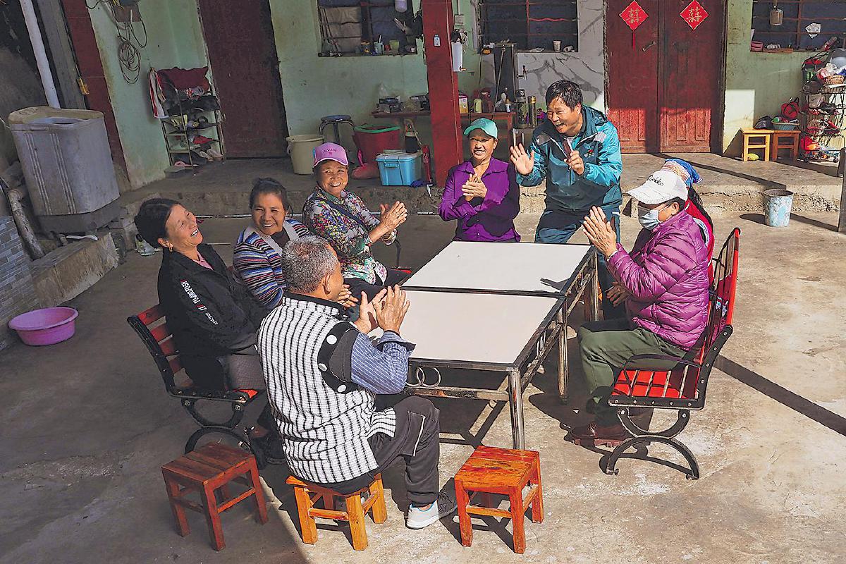 工作之余,桑南才將村民聚在一起,為他們繪聲繪色地講解黨的政策和郵政助農(nóng)惠農(nóng)的措施?! 酢豆と巳?qǐng)?bào)》記者 吳凡 攝