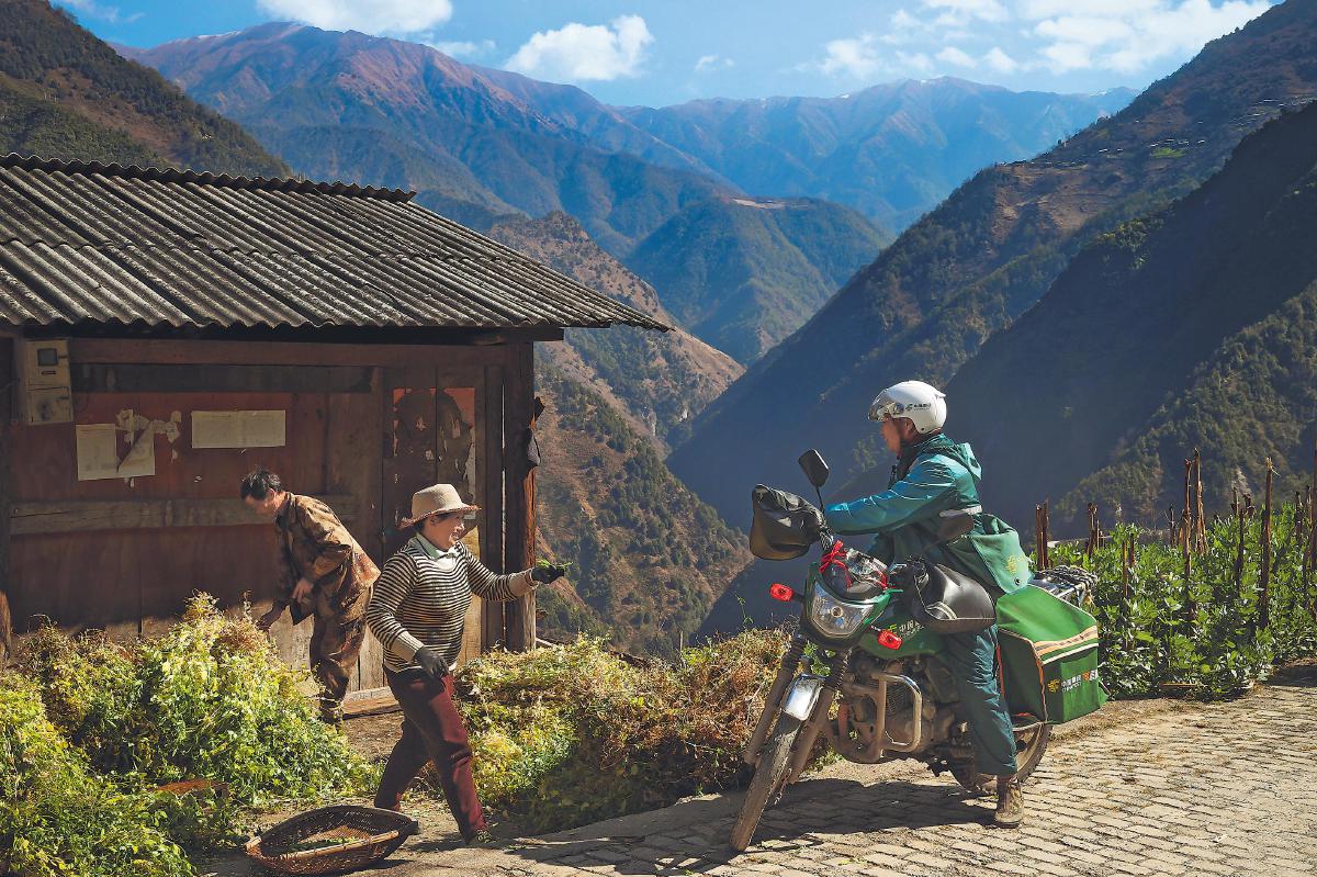 每一次郵件妥投,鄉(xiāng)親們和桑南才的臉上都會(huì)洋溢著幸福的笑容?!跣氯A社記者 李賀 攝