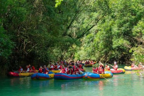 “荔波毓秀勝蓬瀛,七孔滄桑蘊(yùn)古情。”荔波縣民族風(fēng)情古樸濃郁,因其獨特的地理位置和豐富的文化底蘊(yùn),孕育了地球“綠寶石”小七孔。踏入小七孔景區(qū),依托景區(qū)擺渡觀光車親水、戲水以及“水上飛人”“水上摩托艇”等旅游項目吸引了游客的目光。