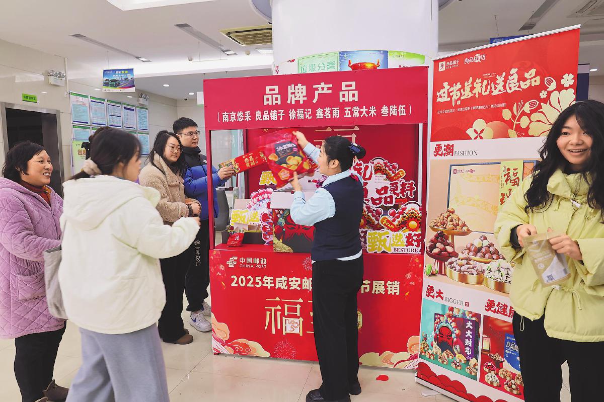 湖北咸寧郵政在網(wǎng)點開設(shè)年貨展銷專區(qū),吸引客戶在線下單?!蹶惪臁z