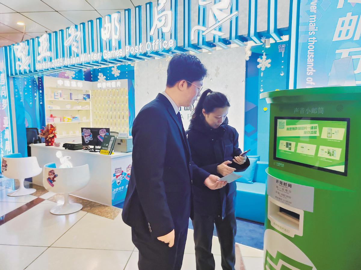 “這里的工作人員服務(wù)太貼心了,讓我感受到了家一般的溫暖?!币晃粊碜灾袊愀鄣倪\動員稱贊道。自2月7日亞冬會開幕以來,5家主題郵局每日服務(wù)近5000人次。作為郵政服務(wù)亞冬會的最前線,也是最亮的招牌,5家亞冬會主題郵局在眾多行業(yè)的服務(wù)站點中脫穎而出,不僅因為每一個主題郵局獨具匠心的設(shè)計風(fēng)格搶人眼球,更因為它集普服、寄遞、亞冬會紀念郵品及特許商品銷售等功能于一體的貼心、實用服務(wù)贏得了社會的廣泛好評?!斑@些精心設(shè)計的郵品不僅僅是紀念品,更是對亞冬會的一種見證?!币晃粊喍瑫驹刚吒叨日J可亞冬會紀念郵品所具有的收藏價值?!皡⒓觼喍瑫俏胰松蟹浅V匾慕?jīng)歷,我想把這里的美好和快樂通過明信片分享給家鄉(xiāng)的親友。”來自哈薩克斯坦的運動員娜塔莎說。