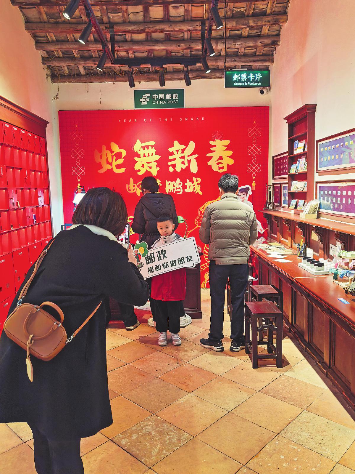 充滿年味的時光郵亭成為游客打卡留念的熱門地點(diǎn)?!趵顐| 攝
