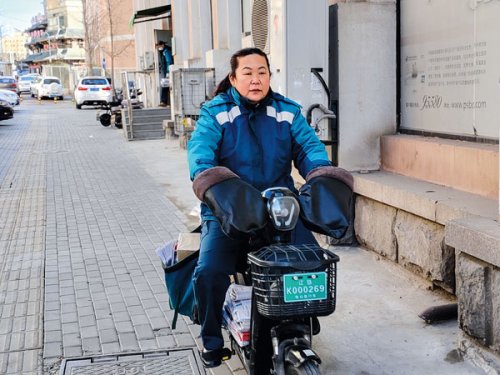 趙明枝代表所負(fù)責(zé)投遞區(qū)域涉及30多條街巷、3萬(wàn)多名群眾。每天她都會(huì)準(zhǔn)時(shí)把報(bào)刊書(shū)信送到收件人手中。(代表供圖)