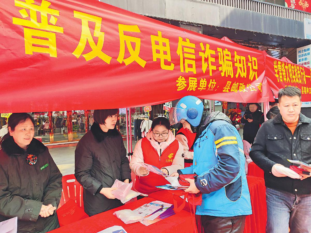 為弘揚志愿服務精神、進一步普及反電信詐騙知識、有效遏制電信詐騙案件的發(fā)生、提升市民反詐騙意識和能力,3月5日,安徽省宿州市碭山縣郵政分公司員工走進梨花里商業(yè)街中心廣場開展“普及反電信詐騙知識”學雷鋒志愿活動?! 跆A滿滿 攝影報道