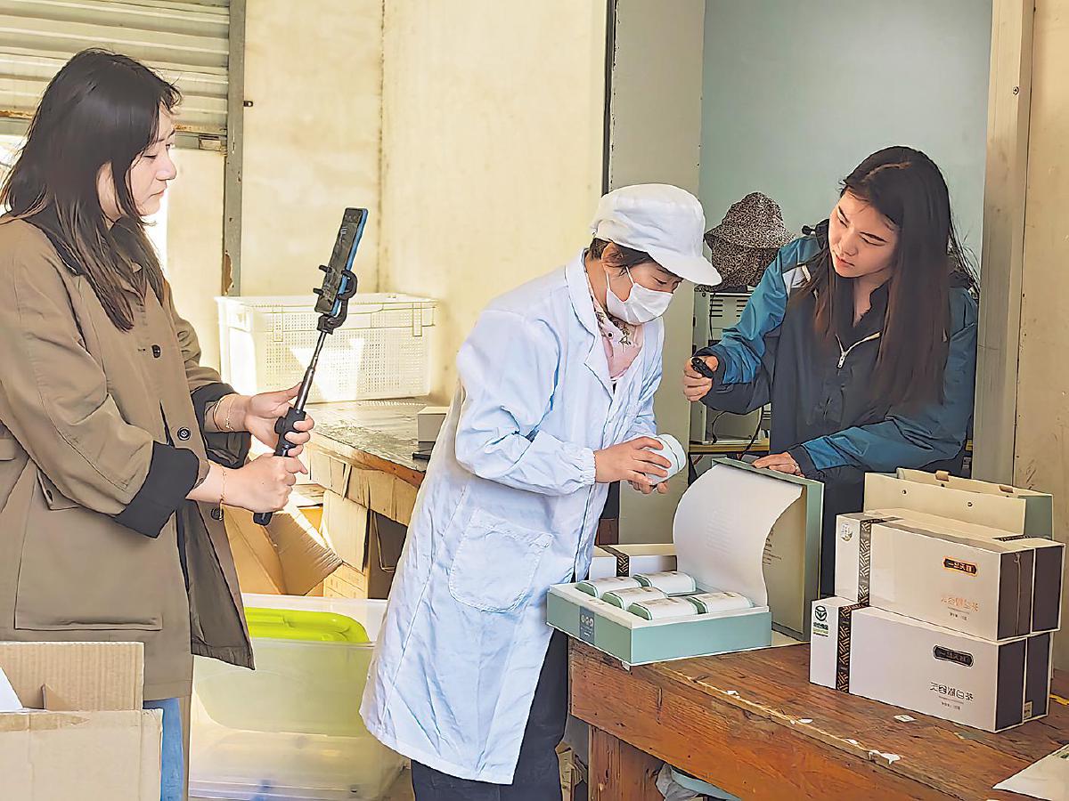 “她”力量是腳踏實(shí)地走好每一步。史秋蓉(右)是江蘇省溧陽市郵政分公司農(nóng)產(chǎn)品助銷選品員。陽春三月,溧陽春茶吐翠,史秋蓉和同事一起走進(jìn)茶企,實(shí)地考察茶葉生態(tài)種植環(huán)境,免費(fèi)幫助茶場拍攝展示茶葉采摘、制作、包裝等全流程的宣傳視頻,擴(kuò)大春茶宣傳面,助力溧陽春茶“走出去”。□查葉娟 攝影報(bào)道