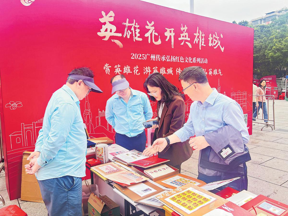 活動現(xiàn)場的郵政特色服務(wù)專區(qū)也成了一道亮麗的風(fēng)景線。郵政工作人員以專業(yè)素養(yǎng)和熱情服務(wù),向市民生動講解郵票背后的紅色故事,讓市民深入了解廣州的紅色歷史和文化內(nèi)涵。同時,他們提供主題郵品封裝服務(wù),精心包裝這份有意義的郵品?,F(xiàn)場展示的定制三色紀(jì)念戳,融合了木棉花、五羊雕塑等廣州城市符號,受到市民追捧。市民蓋戳后感慨道:“小小郵票,承載著深厚的歷史與文化,讓我們真切感受到廣州城的驕傲與溫暖!”